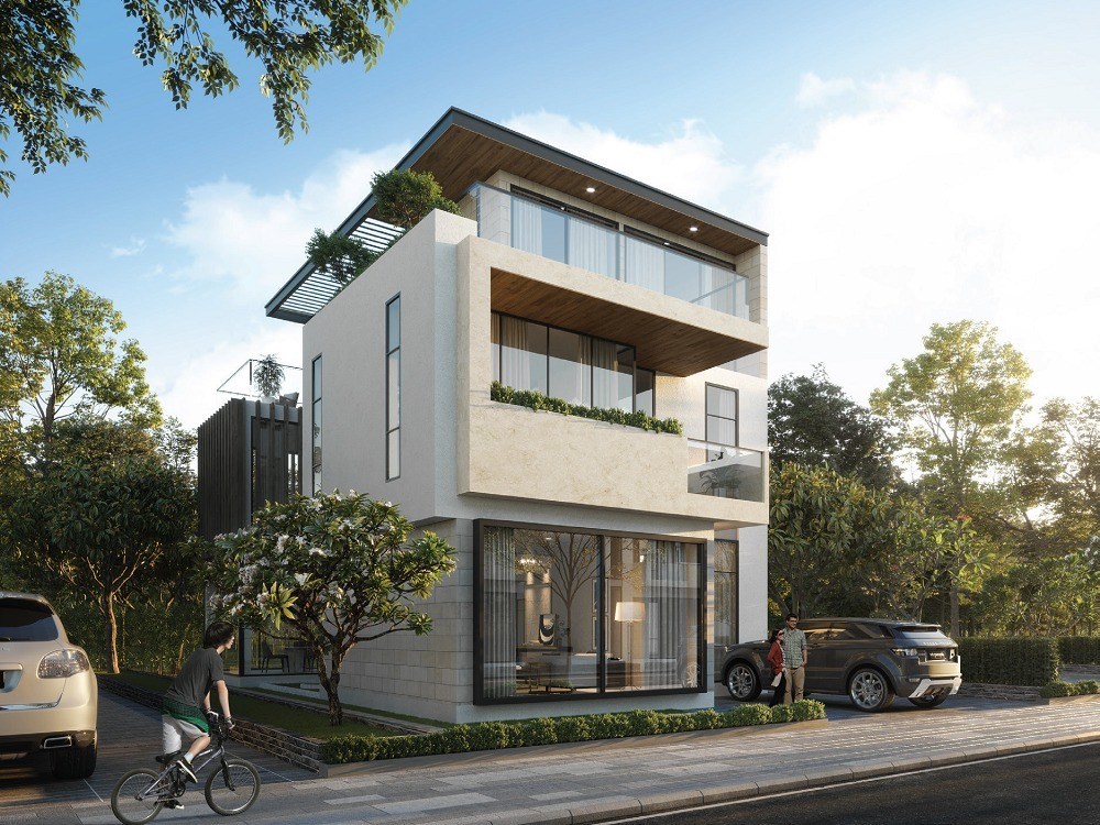 Thiết kế biệt thự dự án Angel Island mang phong cách hiện đại, mang âm hưởng của nhịp sống đô thị, phồn hoa của đô thị chuẩn quốc tế.