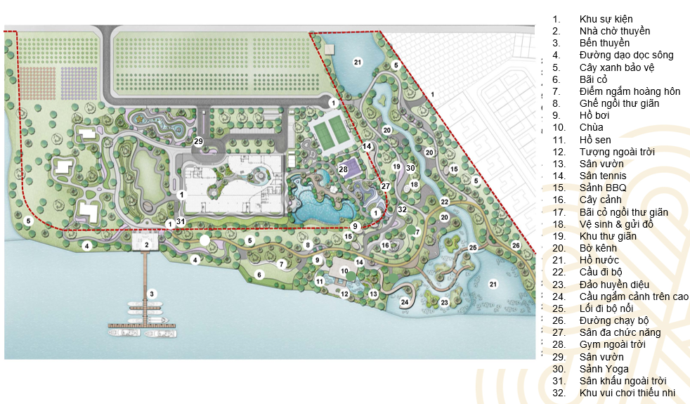 Tiện ích nội khu Trung tâm thương mại, trung tâm văn hóa – thể thao, khu khách sạn, resort, bến cảng, cây xanh…