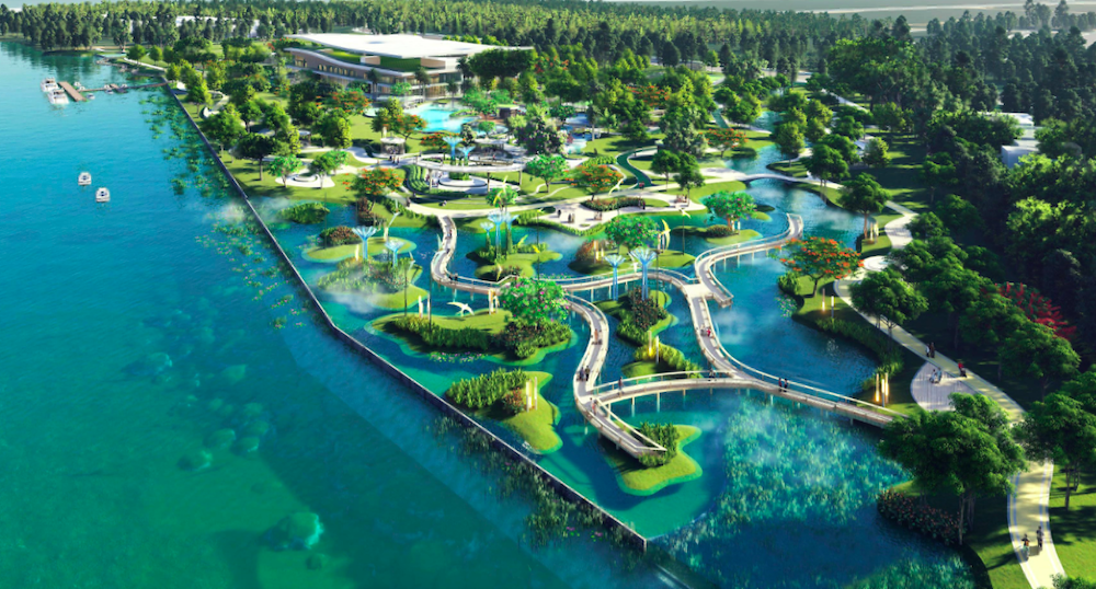 Thiết kế với 6 đảo nhỏ trong tổng thế dự án (5 đảo dân cư, và 1 đảo quy hoạch giải trí quốc tế). Quỹ đất 204.7ha chỉ có khoản 2000 căn biệt thự, shophouse. Quỹ đất dành cho cây xanh lên tới hơn 50%.